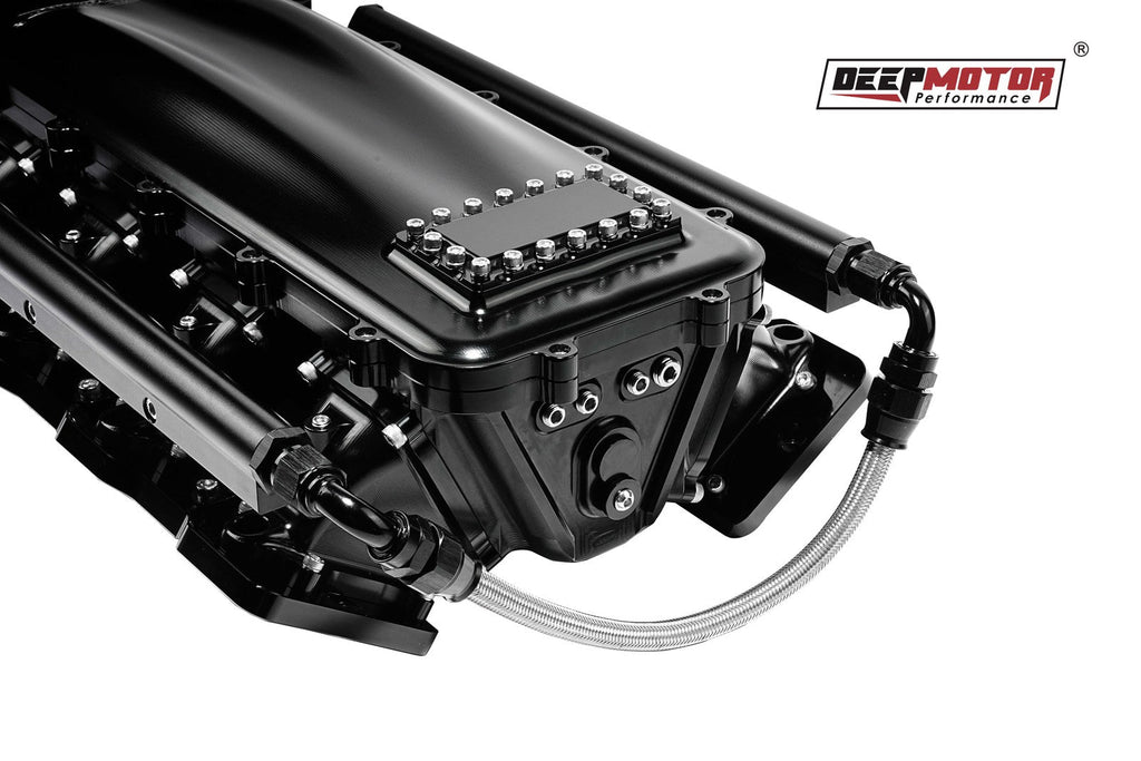 Bolt-In CNC Billet Aluminum Runners and Intake Plenum Accepts Up To 102mm Throttle Body with Burst Panel Flange Includes Fuel Rails,-8AN Billet CNC plenum Combined With Billet CNC Runners For a Strong.Rigid Setup That Won't Distort Under Boost or Warp Perfect for Retrofit Applications The Intake Runners are CNC Billet Aluminum and Offer a Smooth Transition from the Plenum Into the Runners It is an Ideal Choice for 400+CID Stroker Engines and Aggressive Heads/Cam Packages a Raging Billet CNC Plenum Volume Capable of2,000 HP Serve Naturally Aspirated.Nitrous or Remote Inter-cooled Boost Applications. Smooth.Tough Looking profile.Perfectly Suited for High Performance Vehicles."Llghtweight and Robust Item with Over 300psiBoost Handling Capability