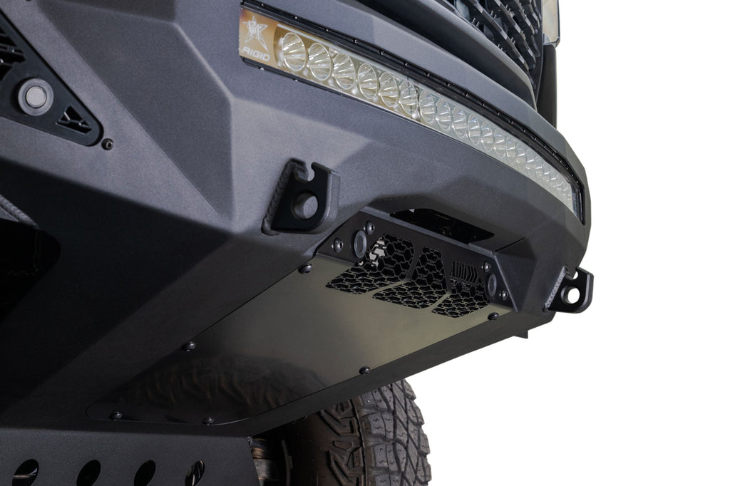 The 2025 Ram RHO Stealth Fighter Front Bumper delivers aggressive styling with serious off-road functionality. Its center section can house either a universal 40" radius light bar or up to ten pod lights, while each side includes a dedicated mount for an additional pod light. For recovery, the bumper comes standard with two 1" thick CNC-machined D-ring clevis mounts, built to handle ¾" pin shackles.