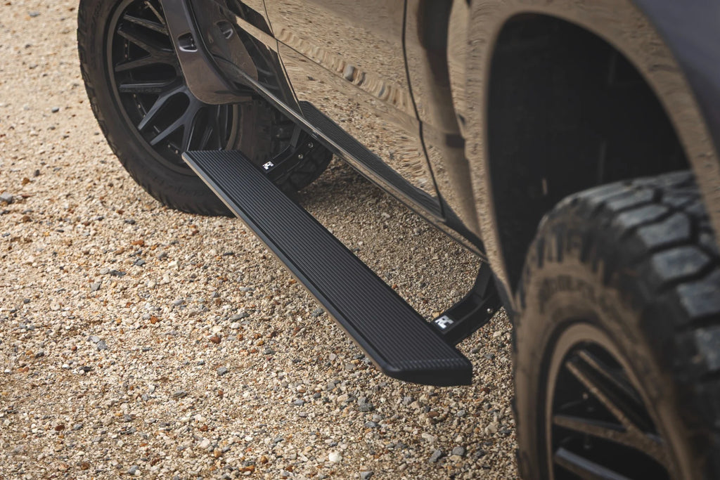 HT-Series Power Running Boards: Step Up in Style:Sidesteps have evolved, and the HT-Series Power Running Boards take entry and exit to a premium level. These automatic, retractable running boards deploy smoothly when the door opens and tuck tight under the rocker panel when closed for a clean, factory-style appearance. A wide 6-inch anti-slip stepping surface provides confident footing in all conditions, while integrated LED courtesy lights illuminate the board when deployed and shut off when retracted for a sleek, streamlined look.